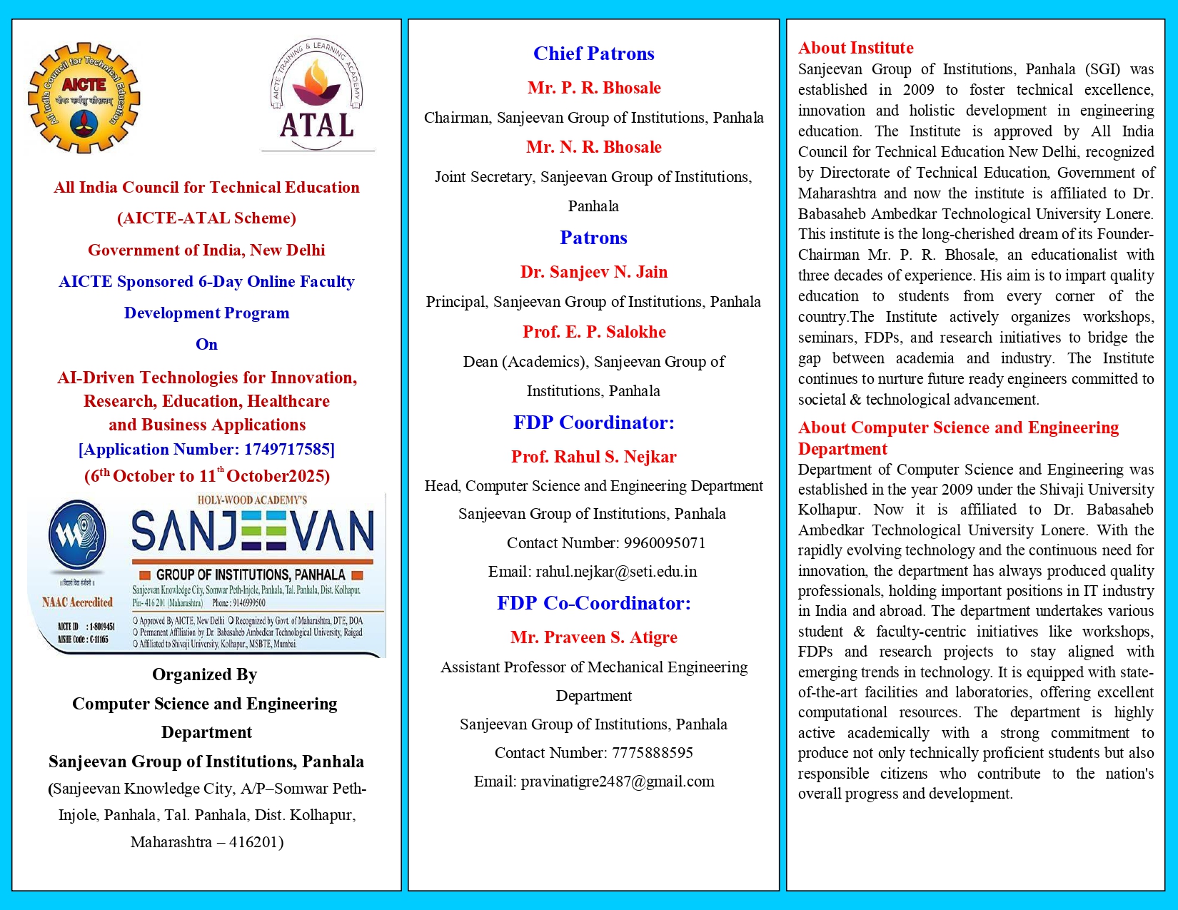 ATAL FDP on AI Driven Technologies for Innovation, Research, Education, Healthcare and Business Application